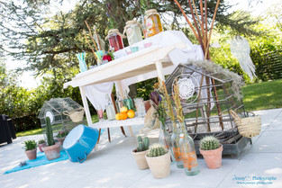 § Des objets pour votre scénographie et des objets chinés ou bricolés : nous avons en stock de nombreux articles de décoration pour embellir votre table, personnaliser votre lieu ou thématiser votre événement : objets vintage, arches de cérémonie, chandeliers, charrettes en bois, nappes vichy, tonneaux, cages à oiseaux, urnes, bouteilles à limonade, contenants pour candy bars, caisses à pommes, malles, tonneaux…